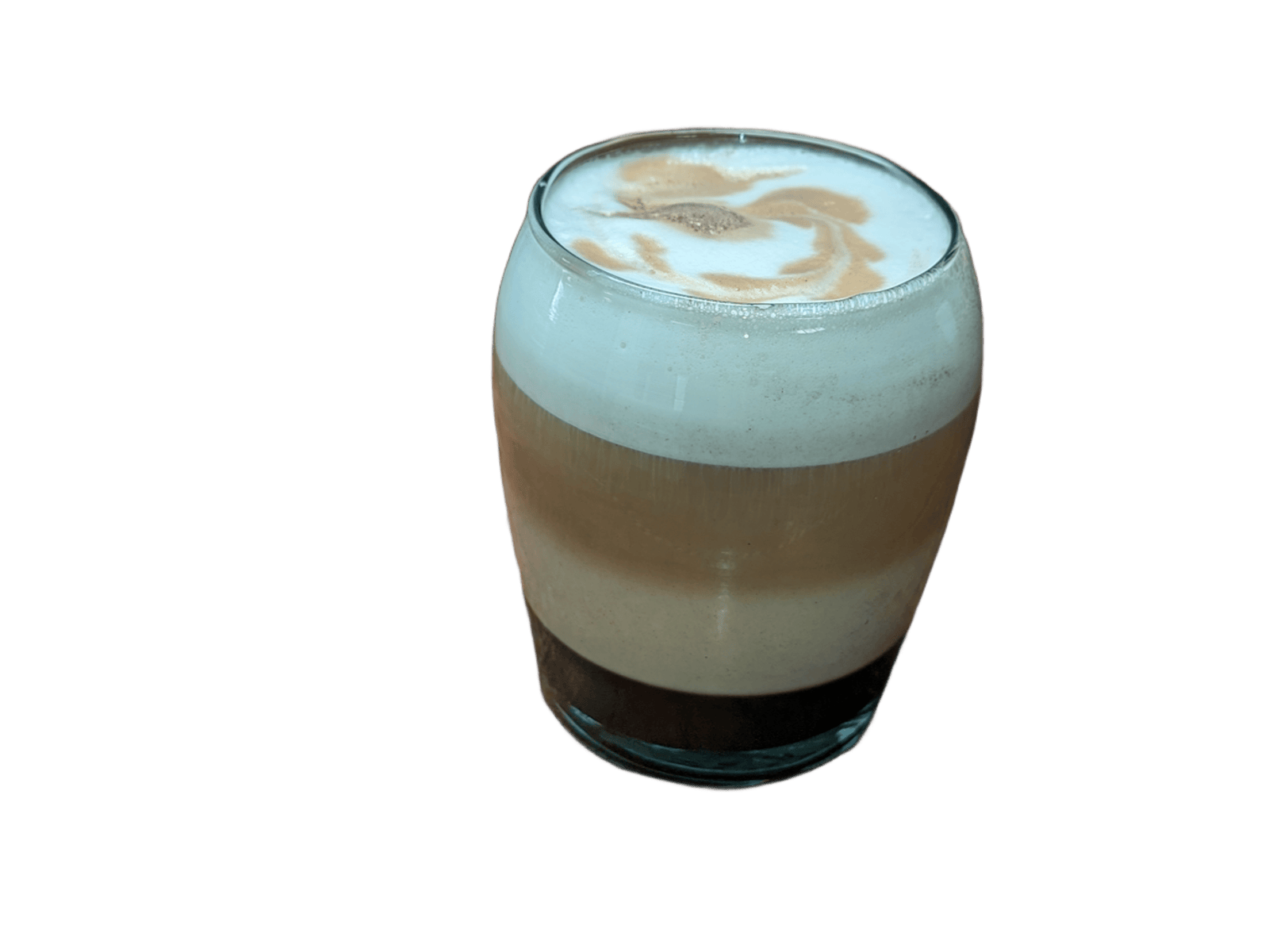 Café espresso con leche vaporizada y espuma de leche.